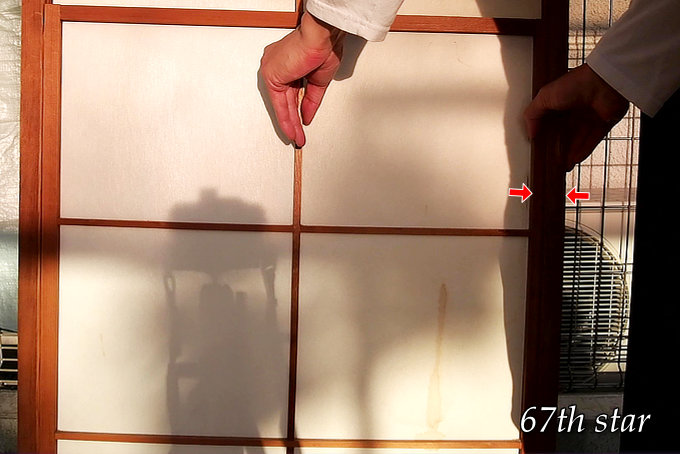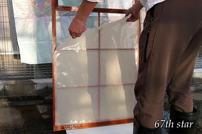 障子を剥がすときは、まず障子戸全体に水をかける。