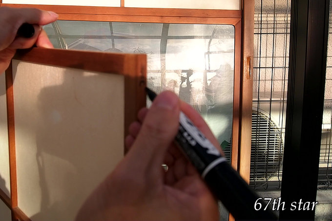 外した雪見窓には、元通りに取り付けられるよう、対応する障子戸と同じ番号を記しておく。