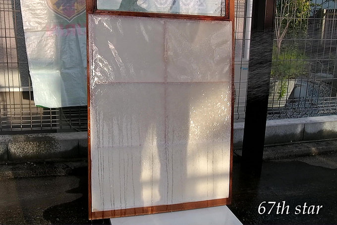 障子戸全体にたっぷり水をかけることで、障子紙が剥がれやすくなる。(^▽^)