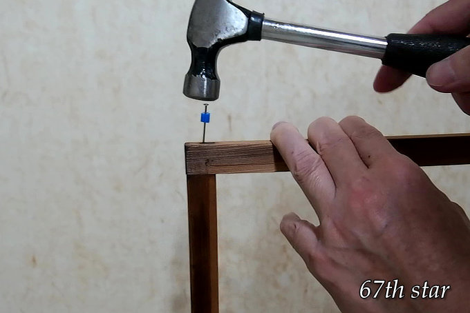 枠が1カ所外れていたため、隠し釘を打って補修した。