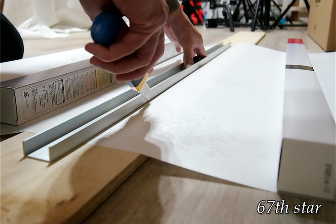 障子をカットする位置には、あらかじめ印をつけてからカッターで切る。