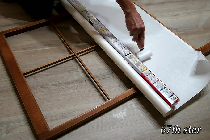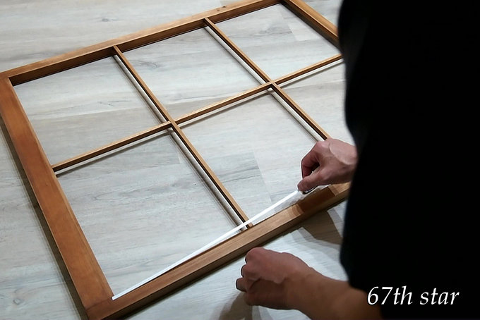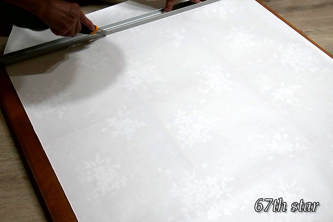 カットした障子紙は、上から順に貼り付けていく。