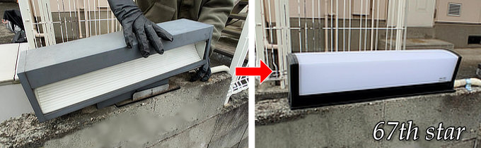 蛍光灯からLEDへ交換する工事は、古い蛍光灯器具を外して新しいLED器具を取り付けるだけ。