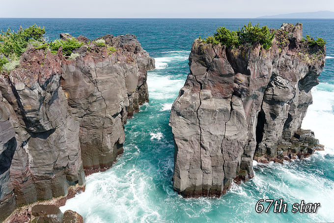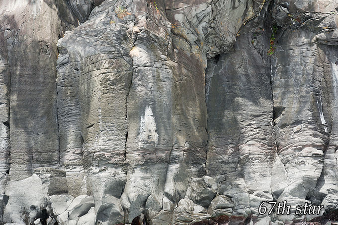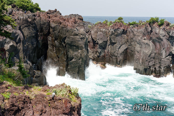 これは約4000年前、大室山の溶岩流が海に流れ込んで作られた自然のアートだろうか